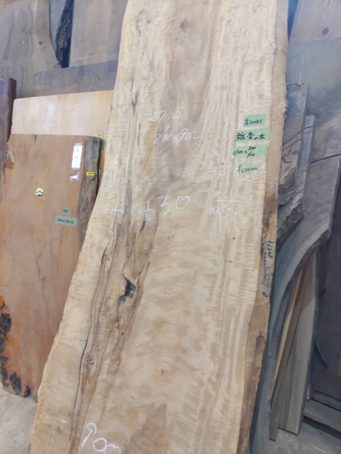 ・掲載品以外にも多数あります。ぜひ、ご来店いただき、すべての板をご覧ください。大判、長もの、小さい板も多数、あります。
