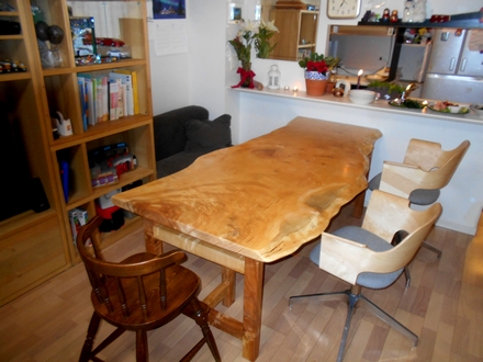 栃、無垢一枚板テーブル サイズ/長さ約1900mm、幅約800-1000o 天板定価/400,000円 脚代、加工代、送料を含みます。 在庫番号/木371 納品先/千葉県 詳細/木楽ブログ2019/1/24 |